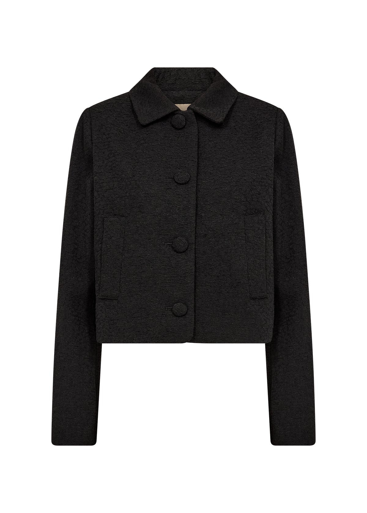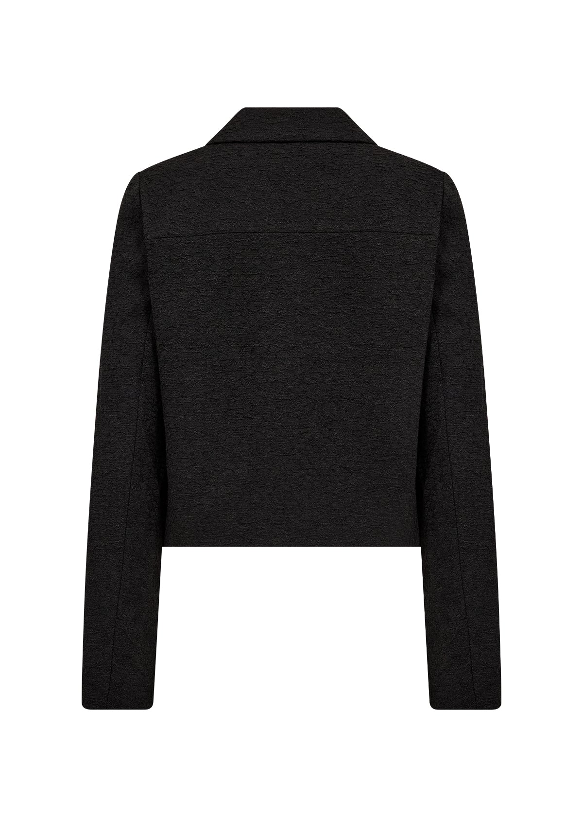 SC-VERENA 2-jakken er laget av 90 % polyester, 5 % viskose, 3 % bomull, 2 % akryl. Jakken har myk krage, store stoffkledde knapper, to lommer foran og en teksturert overflate. Kombiner den med skreddersydde bukser eller et tettsittende skjørt for et raffinert utseende.