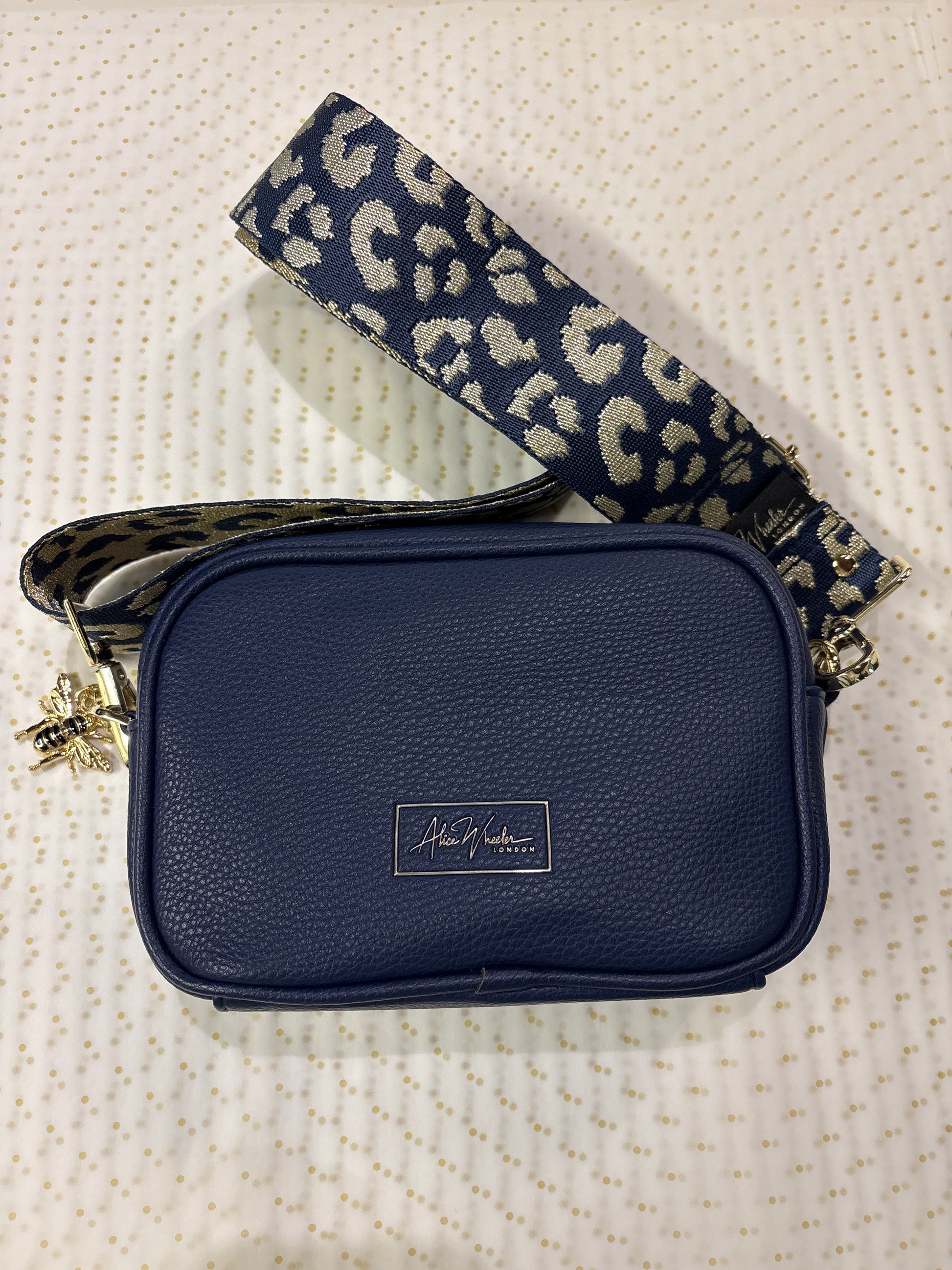 Navy-Mini Soho camera cross body bag fra Alice Wheeler London.